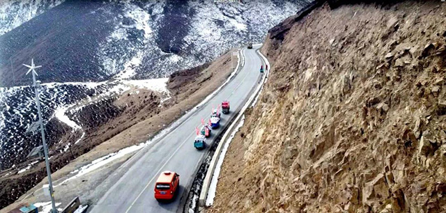 青海位于中國西部,雄踞世界屋脊青藏高原的東北部。北山十二盤坡,地處青?;ブh境內(nèi)達(dá)坂山黃崖豁公路上,因有十二個拐彎而得名,整個路段路窄、彎急、坡陡,行進(jìn)難度極大。門源達(dá)坂山,地處青海省大通與門源兩縣的交界處,為祁連山脈之一脈,埡口海拔3940米,是青海通往甘肅的交通要道,四季飛雪,年平均氣溫-3.9℃,極限低溫-34℃。冬春雪擁冰橫,常遇雪崩冰坍,兇險難行。