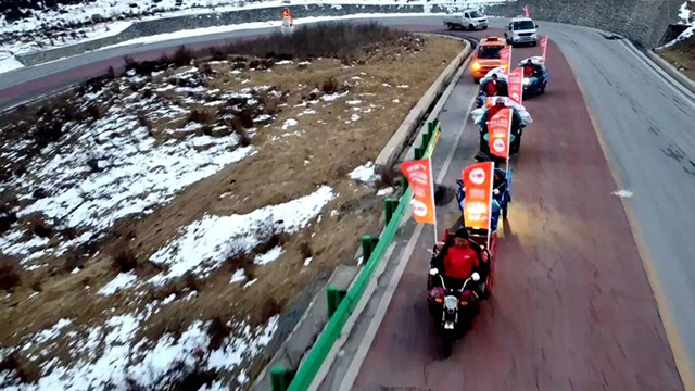 挑戰(zhàn)活動從北山十二盤坡坡底出發(fā),當(dāng)時氣溫近-8℃,卻絲毫沒有影響挑戰(zhàn)的熱情。在保障安全的前提下,6名騎手駕駛著最大載重2000斤的金彭電動三輪車盤旋而上,最終總耗時約2小時成功抵達(dá)目的地。這條有著“青藏高原最美盤山公路”之稱的路線,見證了金彭不斷推動行業(yè)技術(shù)進(jìn)步和服務(wù)用戶的堅定決心,再次夯實了金彭“山地車 大功率”的產(chǎn)品屬性。
