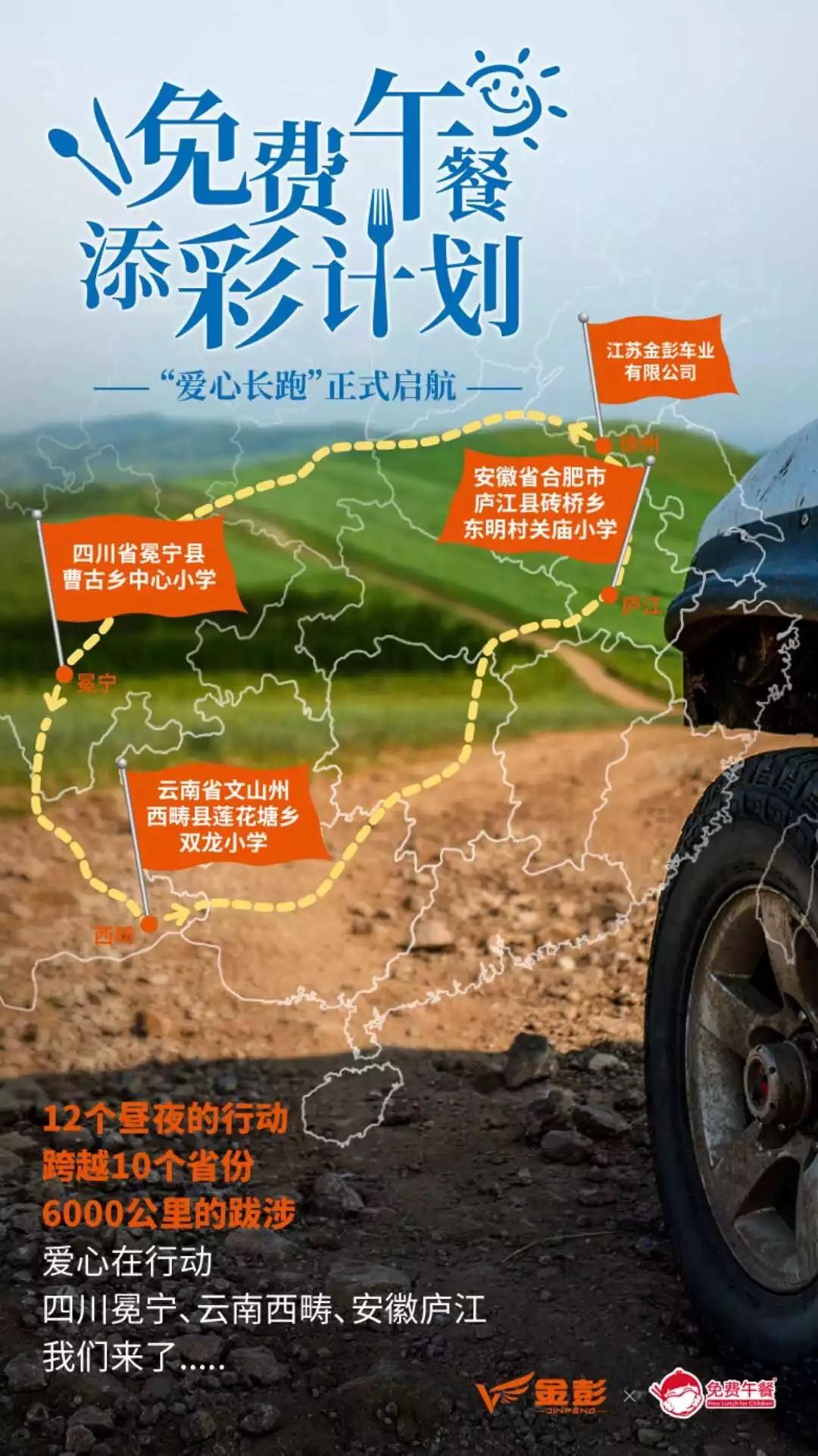 2018年9月8日,添彩計劃志愿者隊伍從徐州出發,驅車6000多公里路程,橫跨10個省份,歷經12個晝夜,為四川大涼山、云南文山州以及安徽廬江縣等地的偏遠山區學童送去了免費午餐和手工彩泥課程。面向全國征集的6名非物質文化遺產傳承人作為志愿者,用栩栩如生的彩泥造型,為山區兒童平淡的生活增添了繽紛絢麗的色彩。